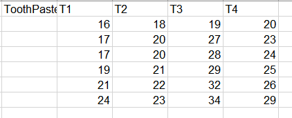 En conclusión, los diferentes dentà Âfricos probados tienen un impacto significativamente diferente sobre la blancura de los dientes. Como el dentà Âfrico T1 ya está en el mercado, con el fin de promover el nuevo producto, los dentà Âfricos T3 o T4 podrán ser elegidos para ser puesto en el mercado. Por favor, tenga en cuenta que ANOVA se fundamenta en una serie de asunciones paramétricas que deben ser verificadas para asegurarse de la fiabilidad del resultado. Â