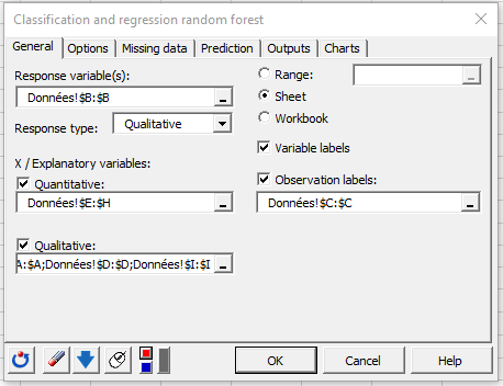 Setting up a Random Forest Classifier in XLSTAT