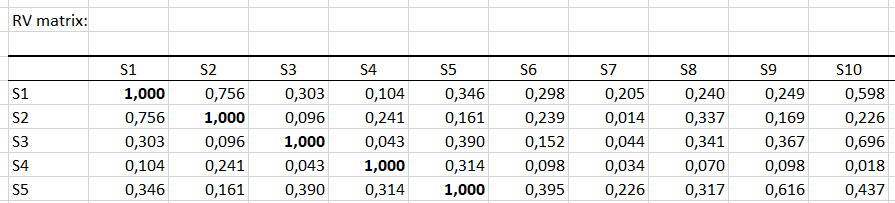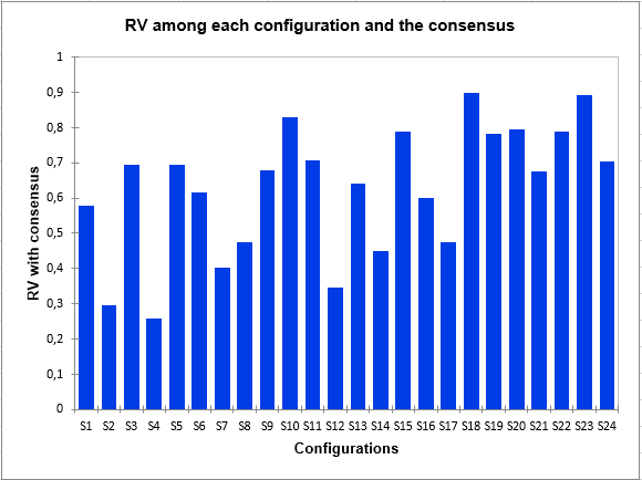 In the Outputs tab, we hose to display the RV matrix, as well as the RV among the configurations and the consensus to have indicators of proximity between the subjects.