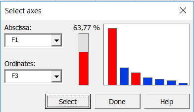 The computations begin once you have clicked on OK. Confirm the axes for which you want to display plots. In this example, the percentage of variability represented by the first two factors is not very high (68.43%); to avoid a misinterpretation of the results, we have decided to complement the results with a second chart on axes 1 and 3.