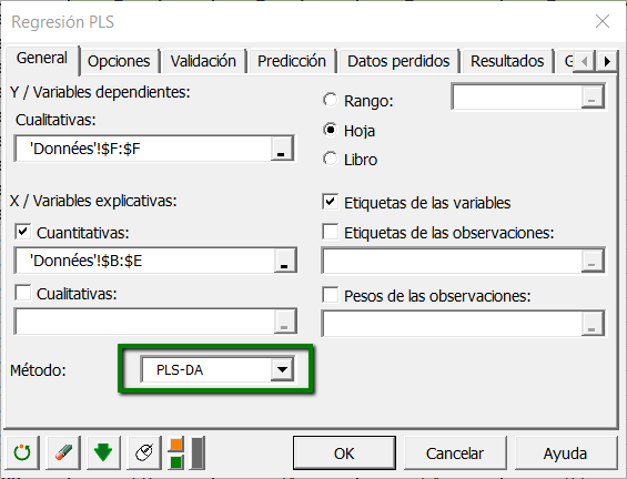 XLSTAT-PLS allows you to predict values and use a validation set for PLS discriminant analysis.