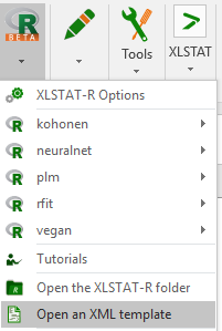 To start developing our feature, we need to open an XLSTAT-R XML template. Click on R / Open an XML template.
