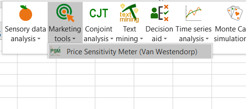 Once XLSTAT is launched, select the Advanced Functions / Marketing Tools / Price Sensitivity Meter menu.