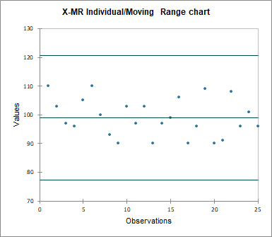 - X Individual: It is useful to follow the moving mean of a production process. Mean shifts are easily visible in the diagrams.