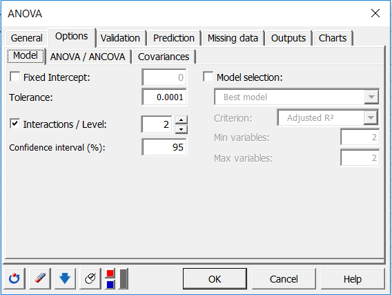 In the Options tab, activate the interactions and set the maximum level of interaction to 2.