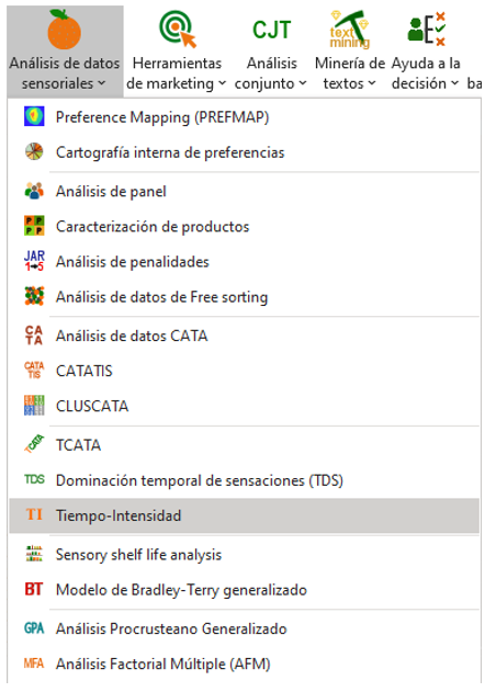 Una vez que XLSTAT esté abierto, seleccione XLSTAT/Función avanzada/Análisis de datos sensoriales/Función de Tiempo-Intensidad (ver más abajo).