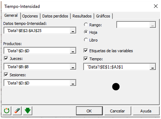 Configuración de un análisis de Tiempo-Intensidad con XLSTAT