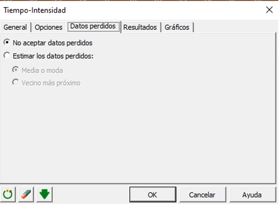 En la pestaña Datos perdidos, elegimos no aceptar Datos perdidos como se muestra a continuación.