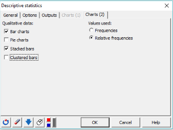 - Bar charts and stacked bars, that graphically illustrate the relative frequencies by category.