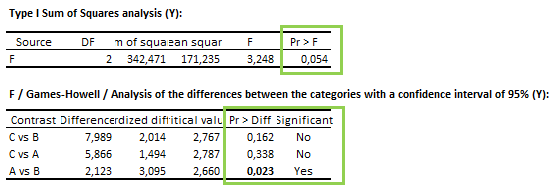 - At least one p-value computed by the multiple pairwise comparisons test is lower than the alpha significance level.