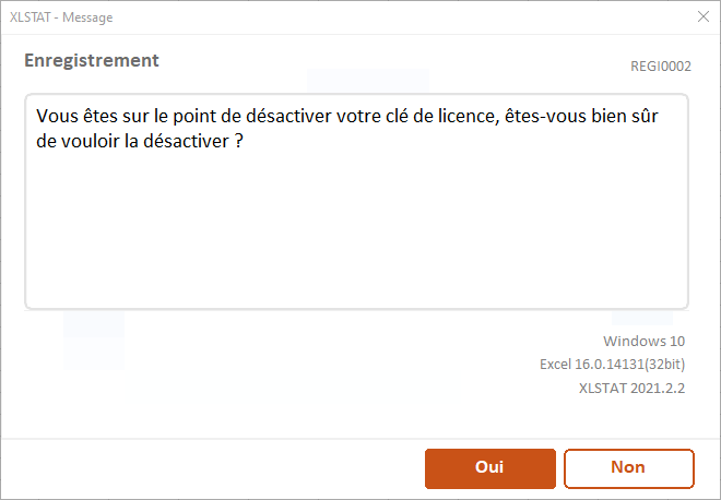 Confirmez que vous souhaitez bien désactiver votre licence.