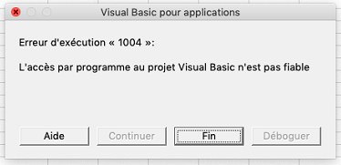 Erreur d’exécution « 1004 » : L’accès par programme au projet Visual Basic n’est pas fiable