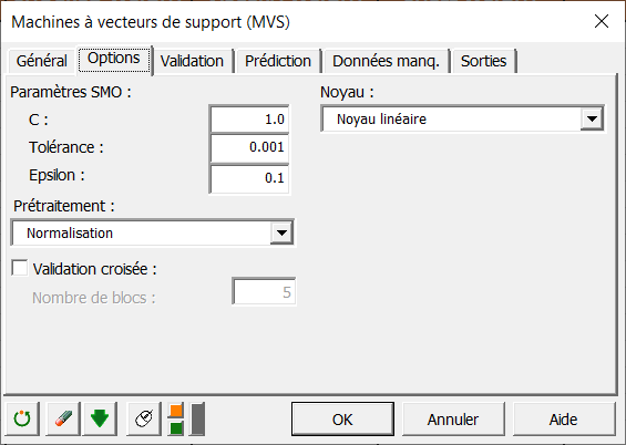 Pour le prétraitement, nous choisissons la normalisation et nous utiliserons des noyaux linéaires comme indiqué ci-dessous.