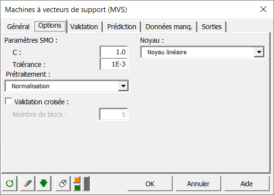 Pour le prétraitement, nous choisissons normalisation et nous utiliserons des noyaux linéaires comme indiqué ci-dessous.
