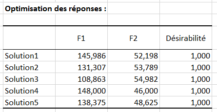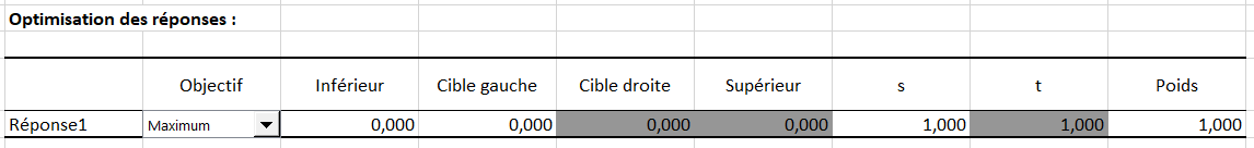 En dessous, le tableau d’optimisation des réponses est affiché, il se remplira automatiquement après avoir entré les résultats des réponses.