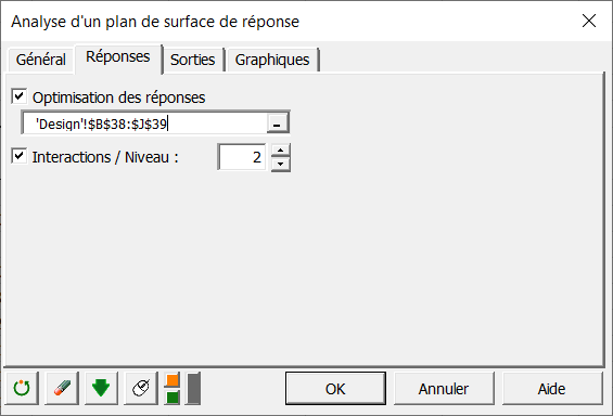 Paramétrer la boîte de dialogue de l’analyse du plan d’expérience