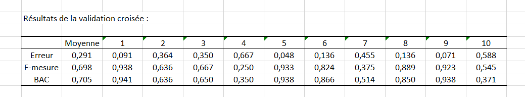 Enfin, pour valider notre modèle, nous pouvons lancer une validation croisée 10-folds.