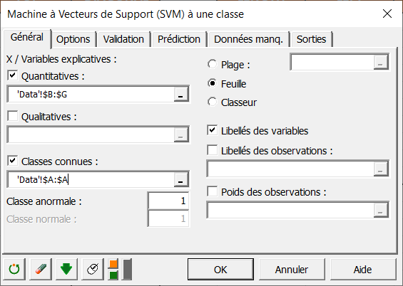 Mettre en place une méthode de SVM à une classe dans Excel avec XLSTAT