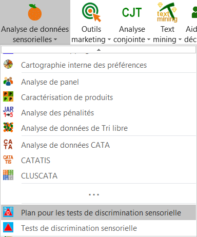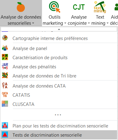 Cliquez sur l’icône Analyse de données sensorielles et choisissez la fonction Tests de discrimination sensorielle.