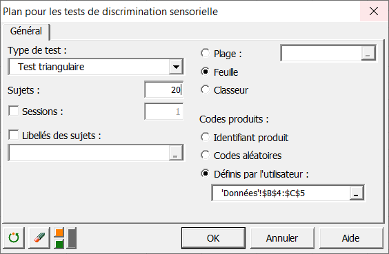 Créer le plan d'expérience pour le test triangulaire avec XLSTAT