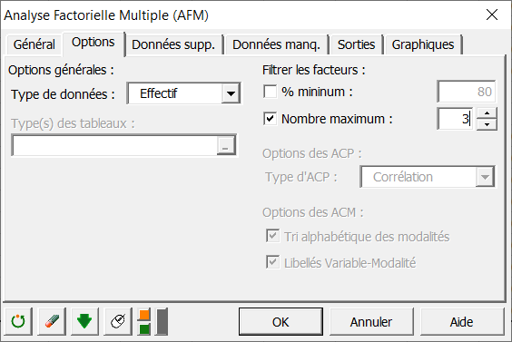Paramétrer une Analyse Factorielle Multiple sur des tableaux de fréquences