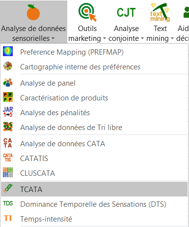 Une fois XLSTAT lancé, sélectionnez le menu XLSTAT / Fonctions avancées / Analyse de données sensorielles/ TCATA.