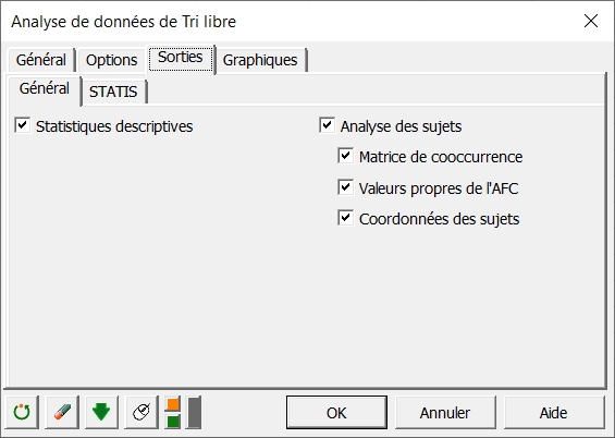 Dans l’onglet Sorties, si vous sélectionnez la case Analyse des sujets, vous aurez dans un second temps une analyse basée sur la proximité des réponses des différents sujets afin d’en faire une représentation graphique.