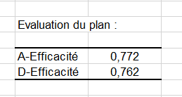 XLSTAT vous donne d’abord les résultats pour les deux sessions combinées et ensuite les résultats session par session. Le premier tableau rassemble les valeurs obtenues pour la D-efficacité et la A-efficacité (voir l’aide de XLSTAT pour plus de détails).