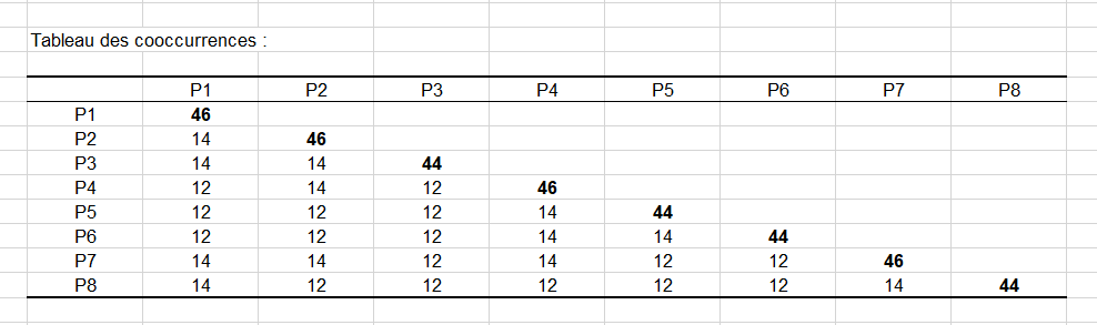 Le tableau des cooccurrences indique combien de fois deux produits ont été évalués par un même sujet.