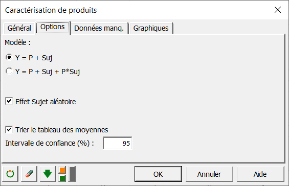 Dans les options, le modèle sélectionné est le modèle le plus simple Y=P+J.
