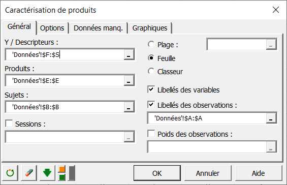 La colonne "obs" doit être sélectionnée comme libellés des observations.