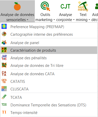 Une fois XLSTAT lancé, cliquez sur l’icône Analyse de données sensorielles et choisissez la fonction Caractérisation de produits.