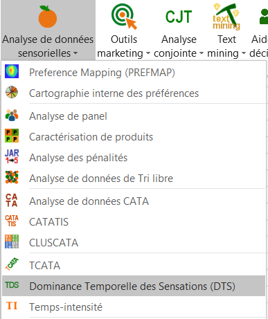 Cliquez sur XLSTAT – Analyse de données sensorielles / Dominance Temporelle des sensations (DTS).