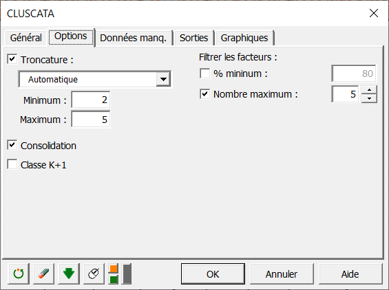 Dans l’onglet Options, nous avons décidé de laisser le choix du nombre de classes automatique, et d’appliquer une consolidation des classes obtenues par l’algorithme hiérarchique afin obtenir une classification plus précise.