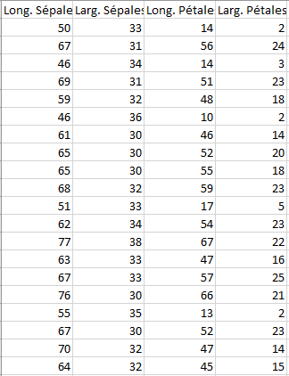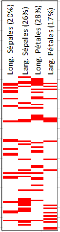 Le jeu de données utilisé pour illustrer l’imputation de valeurs manquantes avec l’algorithme EM est le célèbre jeu de données des iris de Fisher. Des valeurs manquantes ont été introduites aléatoirement.