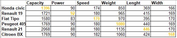 Activez l'option libellé des observations et sélectionnez le nom des voitures.
