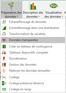 Une fois XLSTAT lancé, cliquez sur lâicône Préparation des données et choisissez la fonction Gestion des données.****