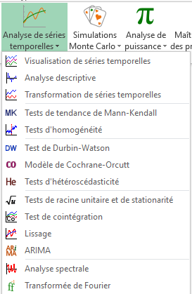 Toutes les méthodes mentionnées ci-dessous se trouvent dans le menu Analyse de données temporelles du logiciel XLSTAT, à l’exception de la régression linéaire, qui se trouve dans le menu Modélisation des données.
