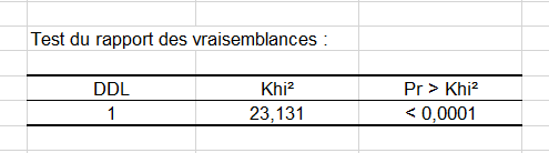 Les résultats du test du rapport des vraisemblances permet de comparer le modèle classique lorsqu’on suppose que les mesures associées au même sujet à des moments différents sont indépendantes (matrice de covariance des erreurs diagonale) et le modèle avec la structure de covariance sélectionnée.