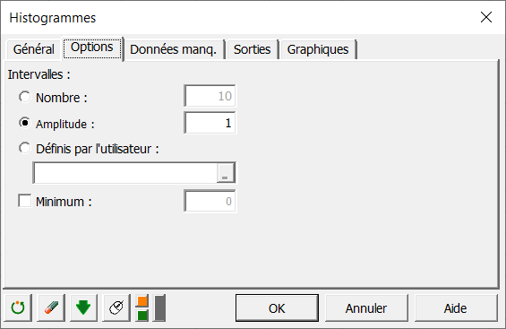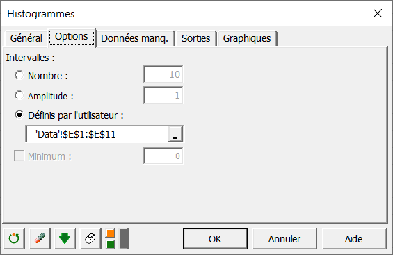 Une fois que vous avez cliqué sur le bouton OK, les calculs sont effectués, puis l'histogramme est affiché, suivi du tableau servant à la construction de l'histogramme (voir feuille "Histogramme").
