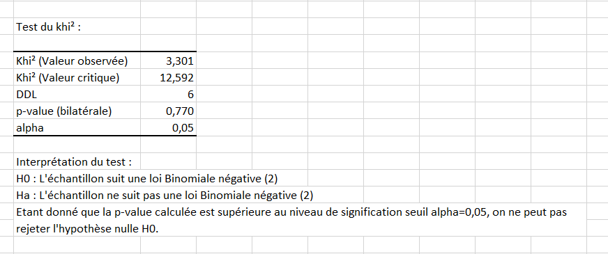 ## Interprétation des résultats du test d'ajustement à la loi Binomiale négative