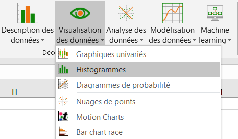 Une fois XLSTAT lancé, choisissez la commande XLSTAT / Visualisation des données / Histogrammes.