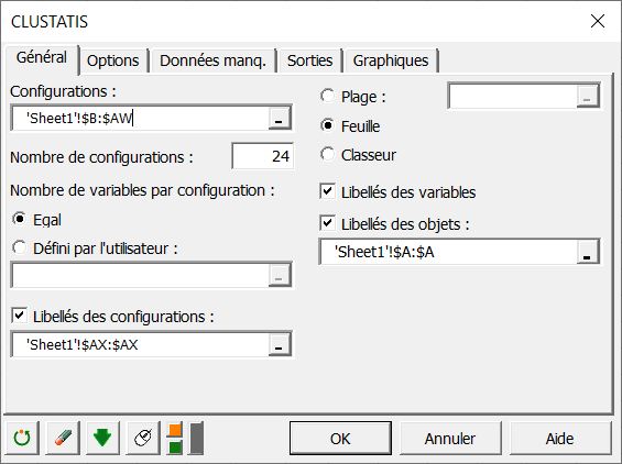 Paramétrer la boîte de dialogue de CLUSTATIS