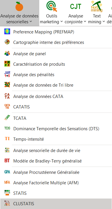 Une fois XLSTAT lancé, sélectionnez le menu XLSTAT / Fonctions avancées / Analyse de données sensorielles/ CLUSTATIS.