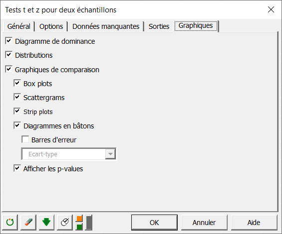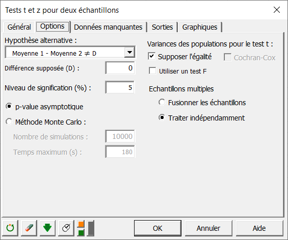 La boîte de dialogue Tests t et z pour deux échantillons apparaît.