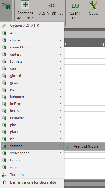 Une fois XLSTAT lancé, sélectionnez la commande XLSTAT-R/seasonal/X-13ARIMA-SEATS (seas)