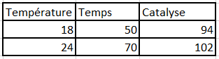 Analyse d’un plan de Taguchi dans Excel