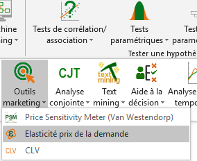 Une fois qu’XLSTAT est lancé, sélectionnez Fonctions avancées /Outils de Marketing / Elasticité prix de la demande.