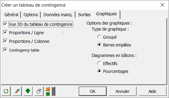 Sélectionnez l'option Vue 3-D du tableau de contingence dans l'onglet Graphiques.