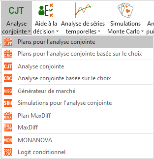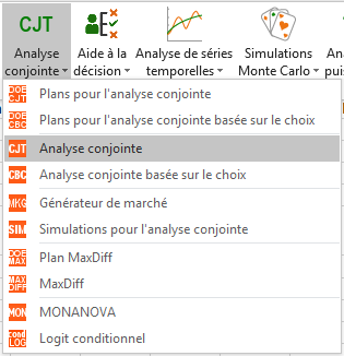 Ces étapes peuvent être menées à bien aussi bien pour une analyse conjointes en profils complets que pour une analyse conjointe basée sur le choix (CBC).